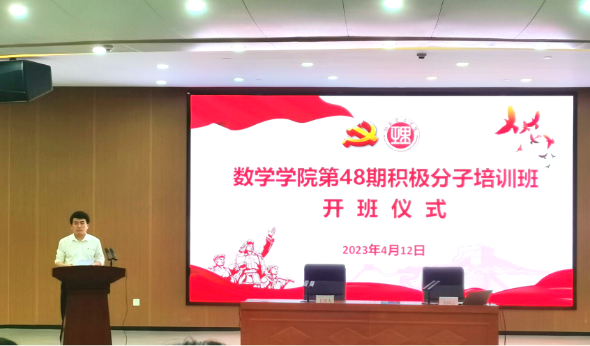 开班仪式在全体人员齐声高唱的《国际歌》歌声中开始,随后英国正版365官方网站第48期入党积极分子代表2022级员工汪俊炜就自身入党决心及今后的努力方向作了表态发言,最后齐亮菲就如何成为一名优秀党员进行了阐述并对48期积极分子及党员提出了具体要求。