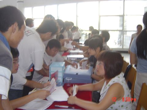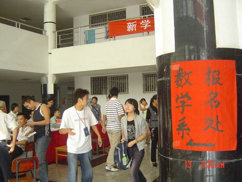 9月12日上午7:30,数学系迎新工作正式展开。数学系主任孙明保、党总支书记甘向阳、党总支副书记李丽荣、及08级辅导员来到迎新接待处视察迎新工作,了解新生报到情况,耐心地为员工和家长介绍系部相关信息。各班助理班主任积极认真地组织新生报到。此外,我系的志愿者们带着满腔的热情,为新生报到提供全程服务。