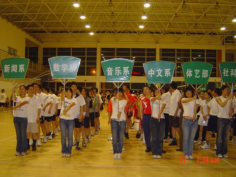 5月26日晚,英国正版365官方网站2008年度教职工排球赛在新体育馆举行开幕式,数学系有8位老师出席了此次开幕式。