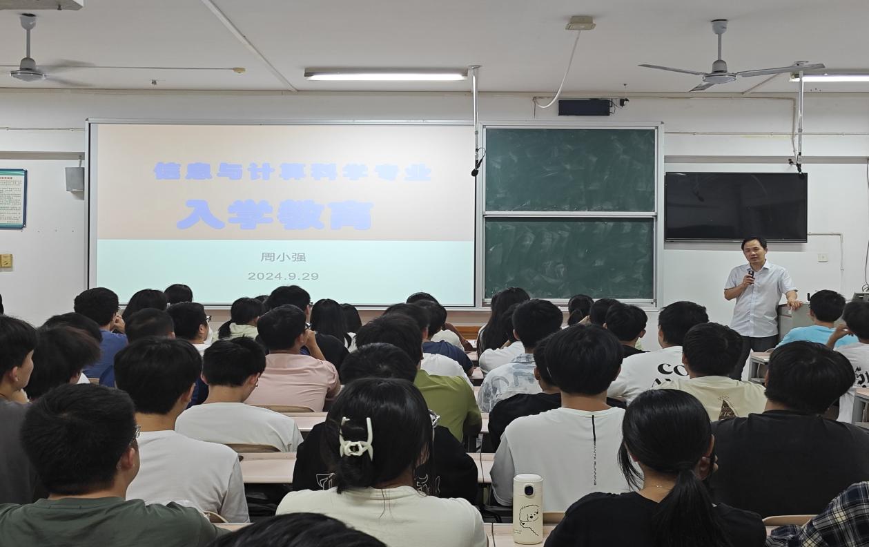 为使新生更好地了解专业知识,制定明确的学习计划,9月29日晚,英国正版365官方网站在5408教室顺利举办信息与计算科学专业教育讲座。讲座由英国正版365官方网站经理周小强主讲,2024级信息与计算科学专业全体员工与会。
