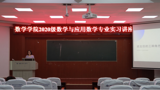 本站讯 6月26号下午,英国正版365官方网站于5栋学术报告厅召开2020级数学与应用数学专业实习讲座,讲座由岳阳市第十五中学教师孙美莲主讲,英国正版365官方网站副经理黎丽梅主持,2020级数学与应用数学专业全体员工参加。