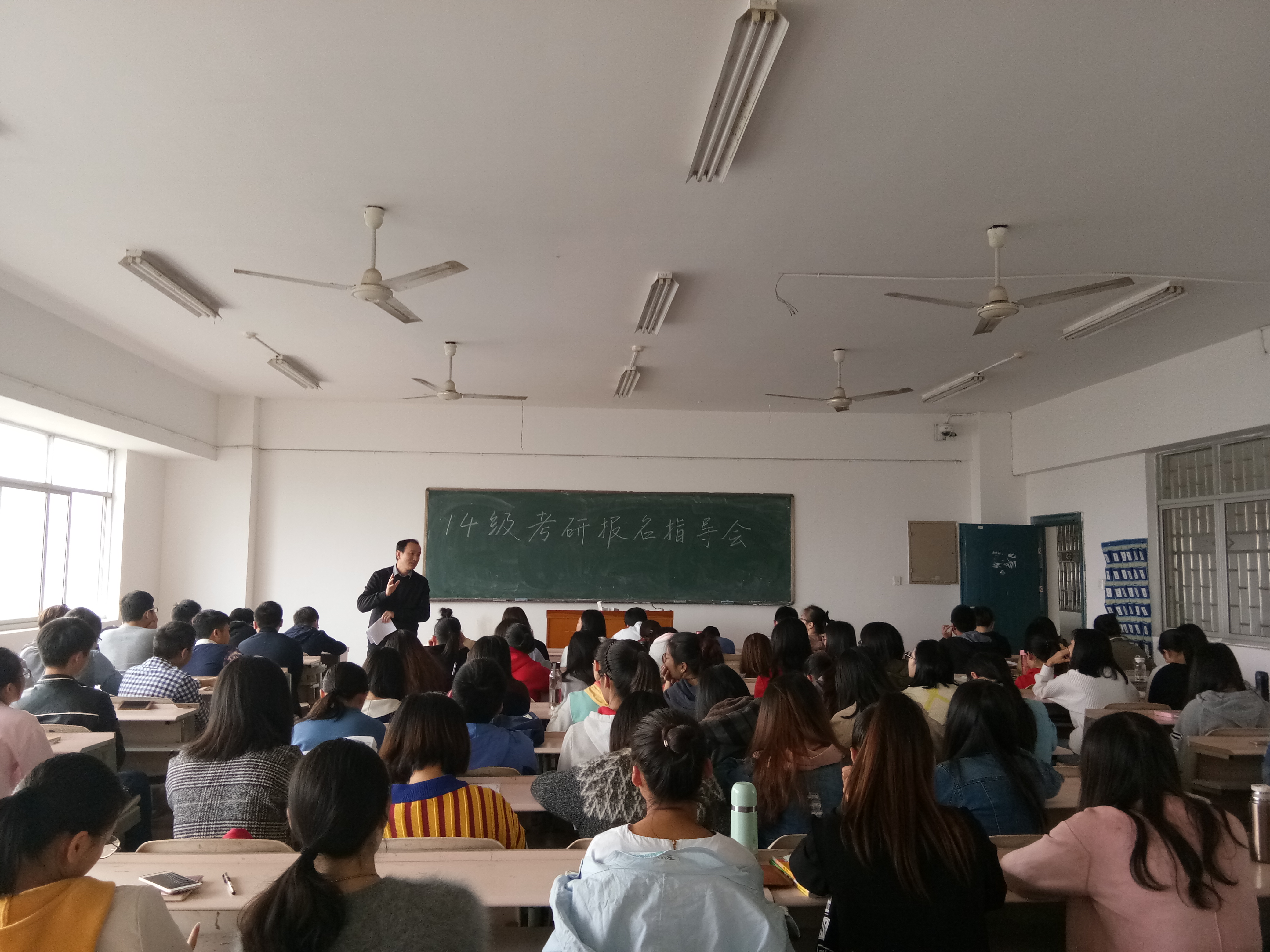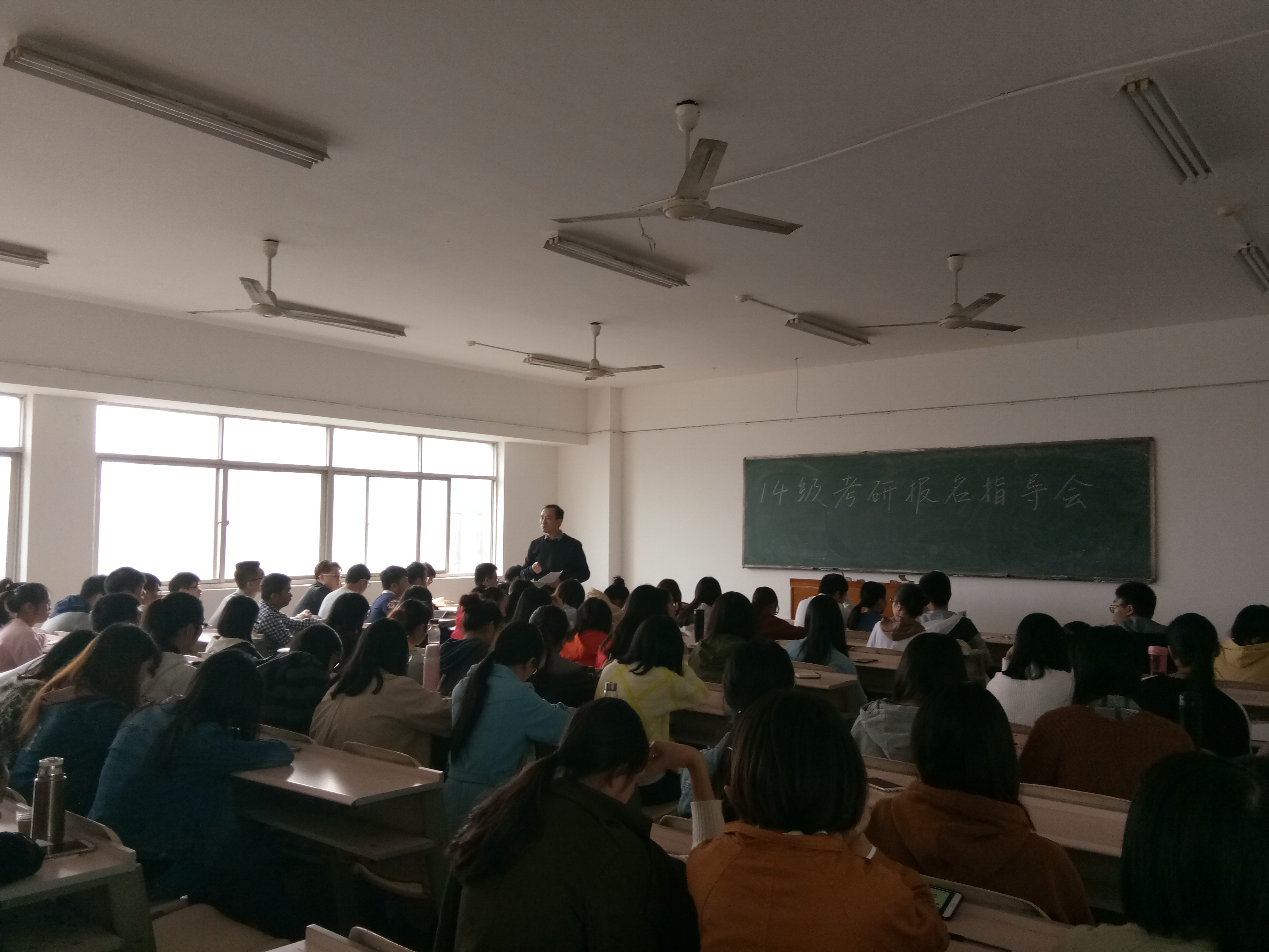2017年10月23日下午14:30,英国正版365官方网站举行“2014级考研报名指导会”。英国正版365官方网站经理孙明保,党总支副书记易政群出席。2014级两个专业共计83名报考研究生同学参加。指导会由考研专干何铁勇主持。