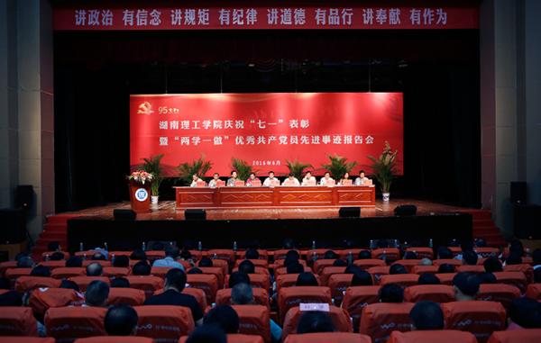 校园网讯 6月21日下午,在建党95周年之际,公司在东院演播厅召开庆祝“七一”表彰暨“两学一做”优秀共产党员先进事迹报告会。全体在家校领导、退休的副厅级老领导、受表彰的共产党员标兵、优秀共产党员、优秀党务工作者、全校副科以上干部、教工支部书记、员工支部书记、组织员、党务部门全体工作人员、党员代表等出席报告会。