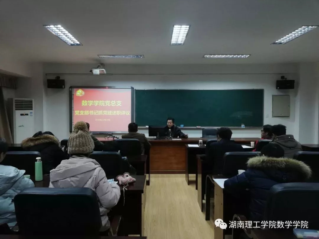 本站讯12月28日晚,公司党总支在5511教室举行党支部书记抓党建述职评议。公司党总支书记孙明保,党总支副书记易政群,总支委员江五元、李松华,教工一支部书记罗德仁、教工二支部书记何帆、研究生支部书记张再云、员工一支部书记傅丹、员工二支部书记何铁勇出席,六名员工党员参加此次会议。