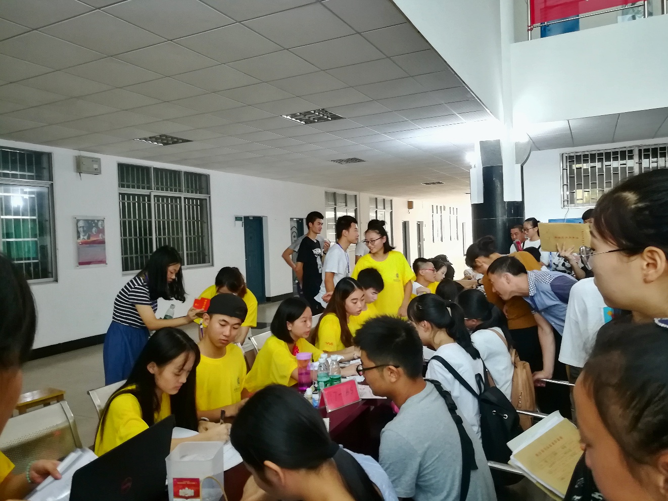 本站讯 炎炎烈日,难敌新一届求学渴望;默默奉献,方显志愿者无私与真诚。9月9日,英国正版365官方网站于5栋教学楼顺利开展了2017级迎新工作。本次迎新工作人员由英国正版365官方网站团学分会及各班志愿者50余人组成。