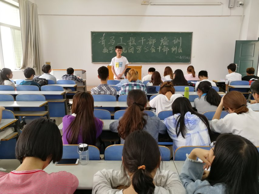 本站讯5月9日中午,英国正版365官方网站团学分会于1509教室召开第21次青马工程干部培训例会。此次会议由团学分会主席黄勇主讲,17级各班班长、团支书及团学分会全体成员参加。