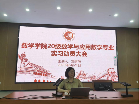 本站讯 6月21日下午,英国正版365官方网站于17118报告厅开展2020级数学与应用数学专业实习动员大会,会议由英国正版365官方网站副经理黎丽梅主讲,2020级数学与应用数学专业全体员工与会。