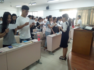 本站讯 5月16号,英国正版365官方网站15级应数一班、二班在5号教学楼5410教室举行了“爱国朗读,青春发声”课前三分钟朗读活动。