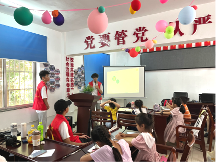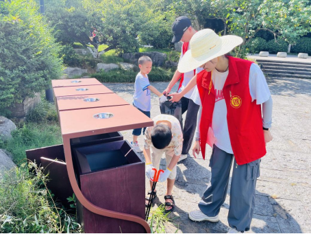 志愿者由深入浅地向孩子们讲解环境保护、垃圾分类的重要性,接着,志愿者们携手畔湖湾社区的工作人员带领小朋友们在南湖游路开展净滩行动。
