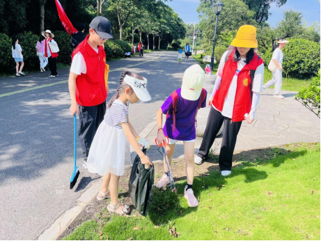 烈日当空,但大家的劳动热情不减。在志愿者们的带领下,孩子们三人一组,分工协作,他们戴着手套,拿着夹钳,将散落在路边、草丛里的烟头、包装袋、饮料瓶等垃圾纷纷捡起,并自觉运用垃圾分类知识进行清理。此刻,小朋友们纷纷化身成了爱护环境的“河小青”,为美好生态环境贡献了一份自己的力量。在本次净滩行动被评为劳动小标兵的方可儿小朋友自豪地说到:“保护环境,人人有责,今后我也会一直争当爱护环境的少先队员。”