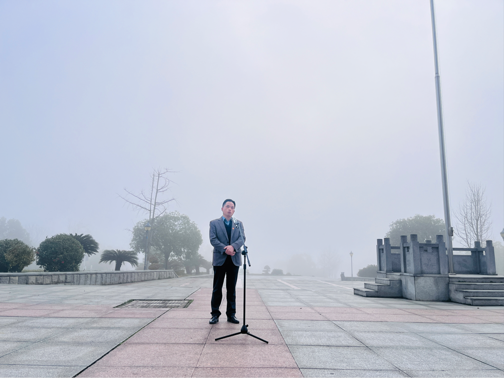 升旗仪式后,5名畔湖湾小学少先队员面向国旗重温少先队入队誓词。他们紧握右拳,大声宣誓,稚嫩却洪亮的嗓音,彰显了作为少先队员的自豪与坚定。紧接着,2023级员工代表陶茜发言,她表示青年在中华民族伟大复兴过程中发挥的重要作用,作为青年的老员工应努力成为民族复兴重任的时代新人。最后,江五元给同学们做国旗下的讲话,他以生动形象的数学例子帮助员工澄清努力与松懈的区别,并鼓励同学们做事要持之以恒,他指出,全体党员、团员与少先队员在升旗仪式后要怀揣更加坚定的爱国之心,以更加饱满的热情为理想信念而奋斗。