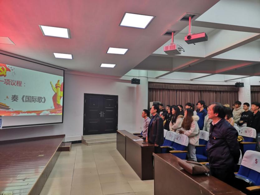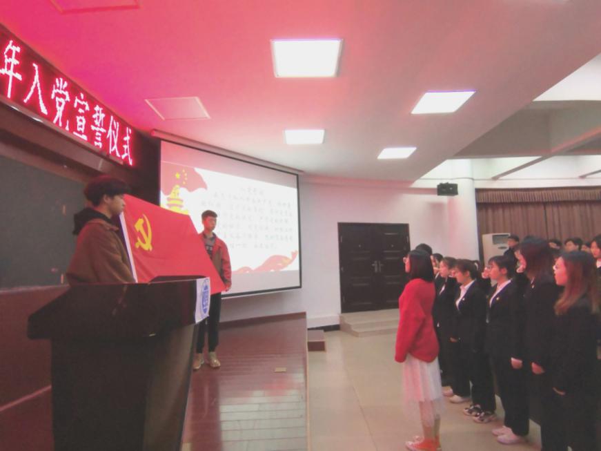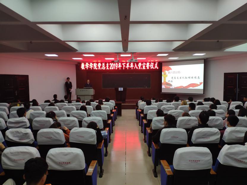 本站讯12月12日晚7:00,于6栋学术报告厅,公司党总支举行2019年下半年入党宣誓仪式。党总支书记孙明保同志,党总支副书记易政群同志出席,员工党支部、研究生党支部全体党员,18名新发展的党员,全体入党积极分子参加。
