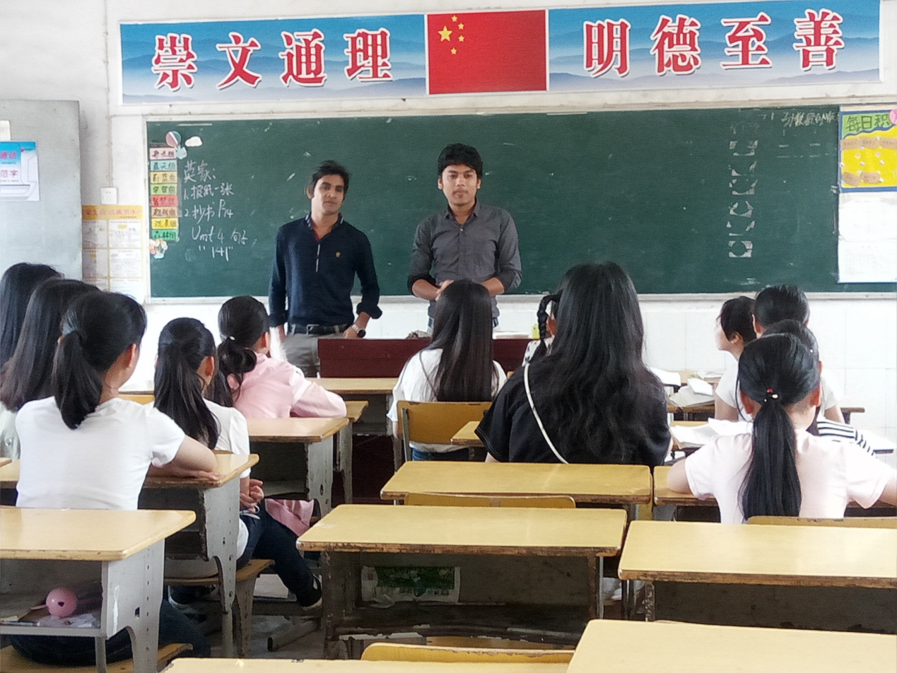 为让孩子们体验不同的文化学习,无偿献血志愿者服务队特意邀请了来自孟加拉国的两位职工参与本次活动;在课堂上,孩子用英语向两位职工做自我介绍,与他们积极互动;随后,两位职工教孩子们念诗和唱英语歌,并在课后和孩子们一起玩英文版的“传声筒”游戏。