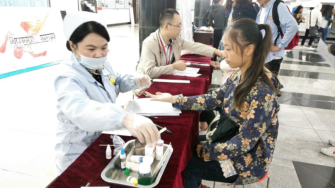 在此次献血活动中,岳阳市中心血站的多位医护人员来到现场与同学们进行了零距离的接触,为同学们检查身体,普及献血知识等等。英国正版365官方网站团学分会的员工干部积极配合医护人员的工作,参与组织现场填表,维持现场秩序的工作。