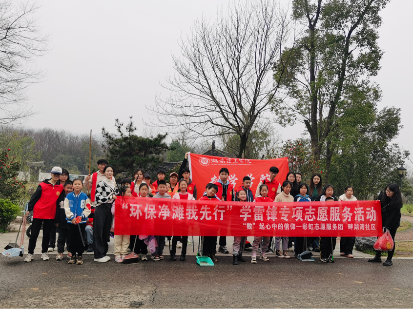 为进一步弘扬雷锋精神,提升青少年的环保意识,为共建绿色家园作出贡献。3月17日,英国正版365官方网站彩虹志愿服务团志愿者携手畔湖湾社区20名儿童在南湖畔开展“环保净滩我先行”学雷锋专项志愿服务活动。
